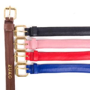 Los colores de los collares de piel para perro Mapek son parte de la primer colección, estos son: rojo, negro, azul eléctrico, café y palo de rosa. Estos colores combinan con cualquier tono de pelaje que tu mascota pueda tener, y lo mejor de todo es que los puedes personalizar con su nombre.